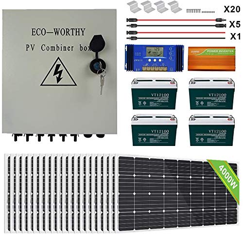 - Package List:20pcs 195W Solar Panels + 4pcs100AH Battery+6 String PV Combiner Box+ 60A Controller+ 3500W 48V-110V Off Grid Inverter+ Solar Cables +Z Brackets