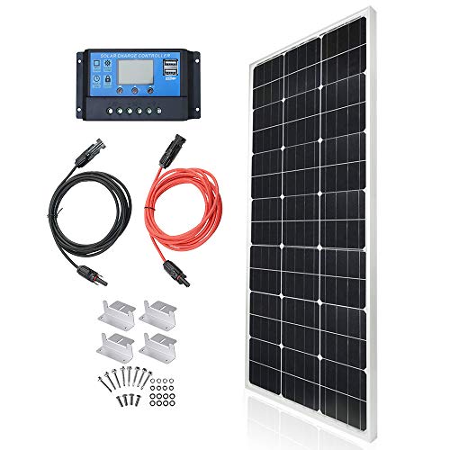 TP-solar Solar Panel Kit 100 Watt 12 Volt Monocrystalline Off Grid System for Homes RV Boat + 20A 12V/24V Solar Charge Controller + 16ft Solar Cables + Z-Brackets for Mounting